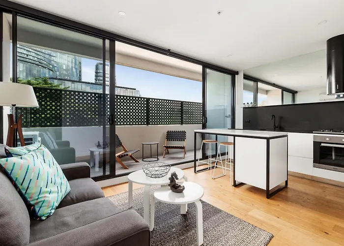 Sleek And Modern In Charming Location公寓设有设施齐全的厨房和配阳台,沙发 和卫星频道平板电视的客房. 客人可以游览周边的地标,公寓距离发现大楼有3.4公里,距离墨尔本旧监狱有4.9公里.